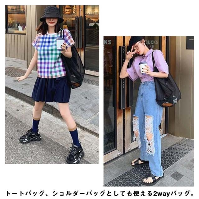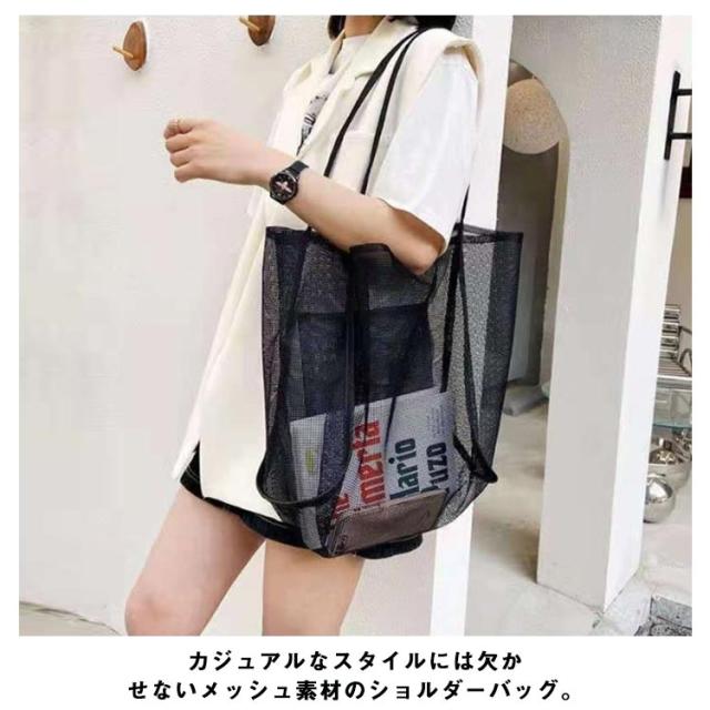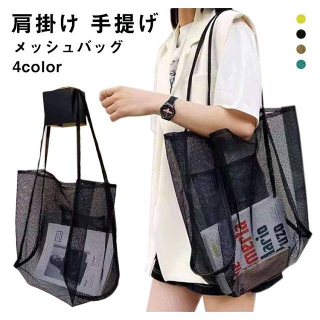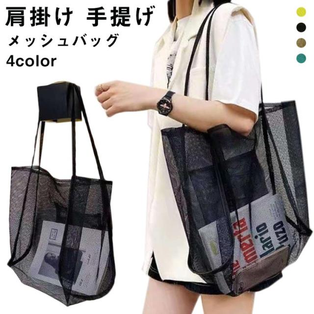 メッシュトートバッグ レディース バッグ メッシュバッグ 肩掛け 手提げ 大きめ 大容量 a4 ネットバッグ 編み エコバッグ 軽量 透け感 夏 おしゃれ 黒 母の日 プレゼント 送料無料