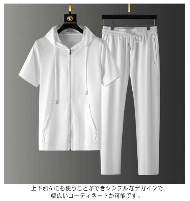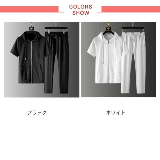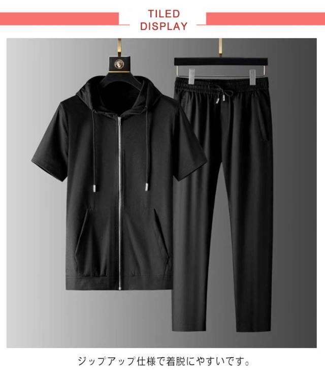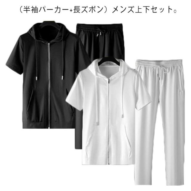 セットアップ メンズ ジャージ上下 夏 薄手 上下セット スポーツウエア 半袖パーカー 長ズボン 2点セット ジップアップ フード付き ロングパンツ ゆったり 大きいサイズ 吸汗速乾 無地 スポーツ アウトドア 運動着 カジュアル おしゃれ 春服 夏 夏服 送料無料