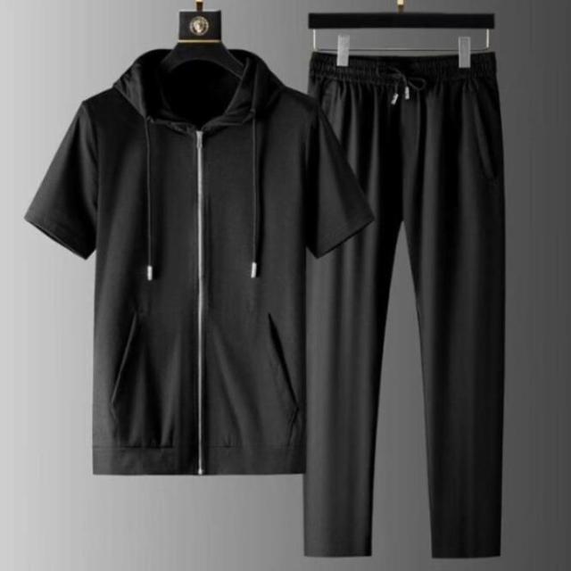 | (半袖パーカー+長ズボン)メンズ上下セット。 ジップアップ仕様で着脱にやすいです。 ウエストは総ゴム、外側には調節可能なヒモ付きになっています。 上下別々にも使うことができシンプルなデガインで幅広いコーディネートか可能です。 カジュアルやスポーツ、部屋着としてもご利用頂けます。 | |