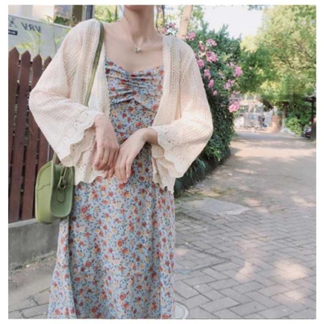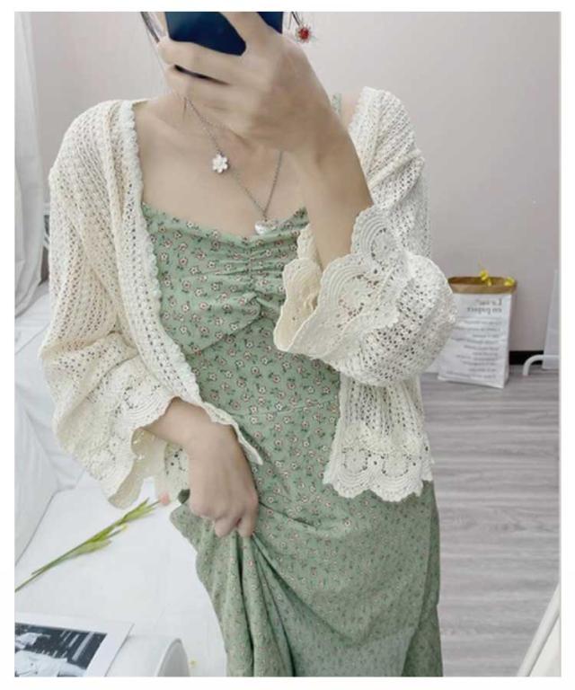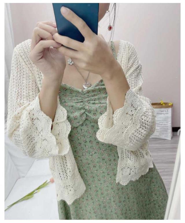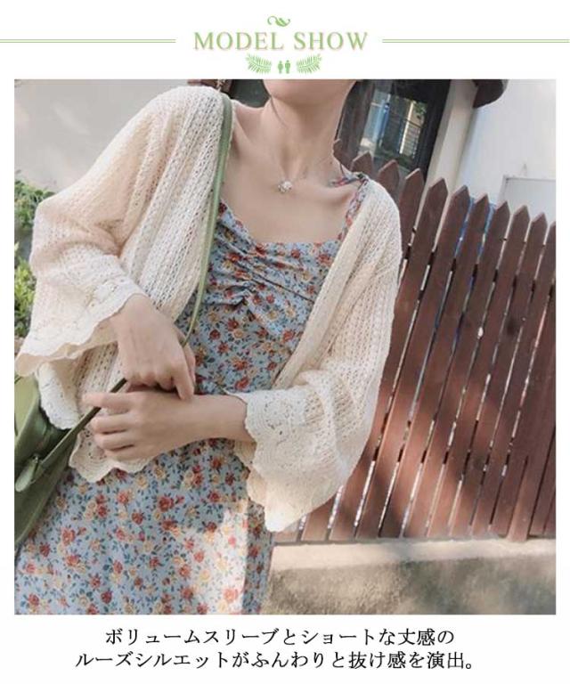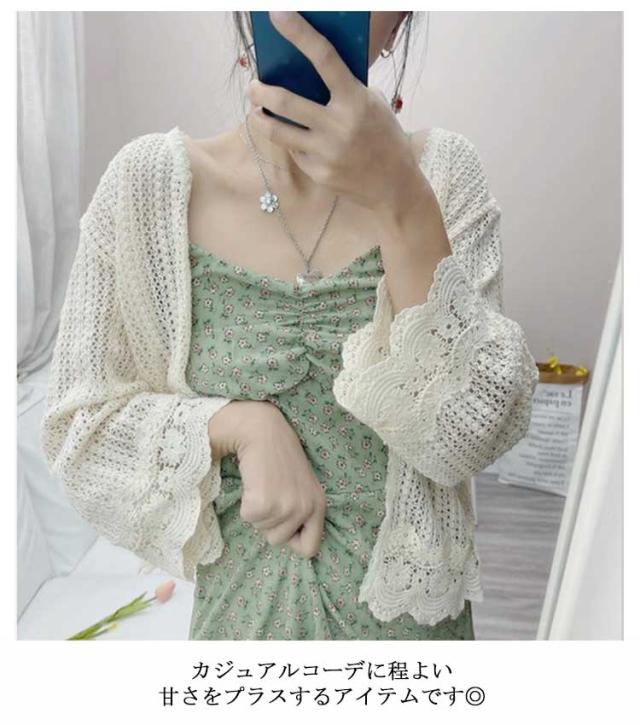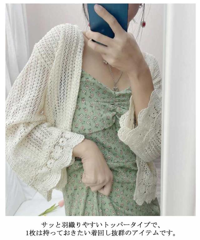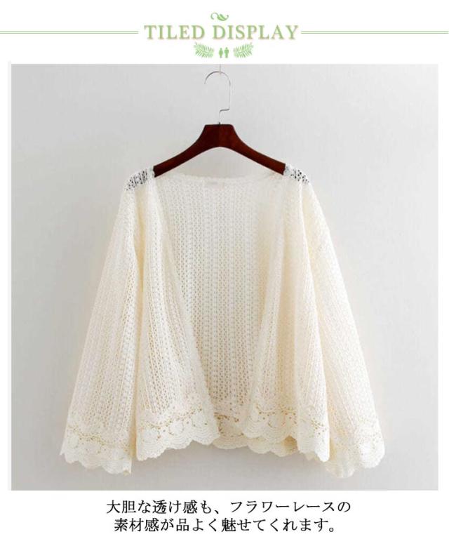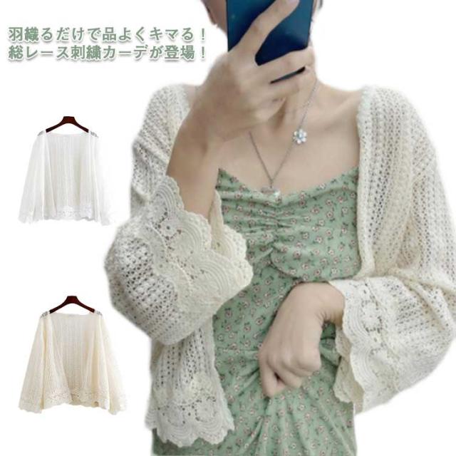 【送料無料】レース カーディガン 透かし編み 長袖 レディース メッシュ 透け感 春夏 花柄 メロン 羽織り ゆったり 重ね着 レイヤード ボタンレス レース トップス ベージュ ホワイト おしゃれ フリーサイズ