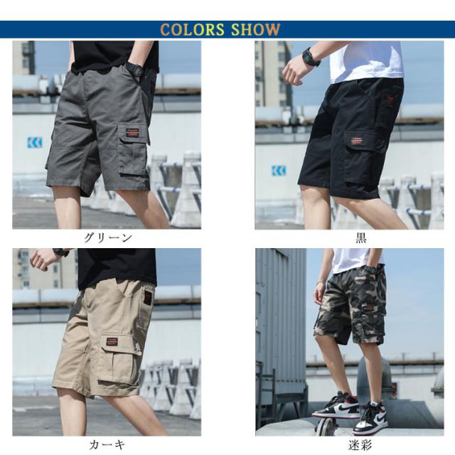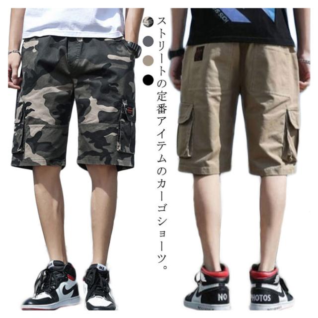 ハーフパンツ メンズ カーゴ カーゴショーツ カーゴパンツ ハーフ 迷彩 アウトドア パンツ ショートパンツ ひざ下 カモフラ 短パン ショーツ ボトムス パンツ ダンス 衣装 ヒップホップ 大きいサイズ おしゃれ