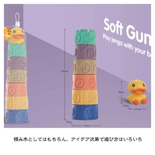 | 赤ちゃんの初めての積み木にピッタリの、柔らか素材の積み木セットです。 早期教育に役に立つ それぞれのブロックは六つの面があり、六つの次元を網羅して、赤ちゃんの早期教育の認知を受けることができます。 3D立体レリーフ工法 表面は豊かな浮き彫りのテクスチャーで覆われ、質感に優れて、肌触りも繊細。 表面に凹凸のある積み木のブロックは、小さなお手てでも滑らずつかみやすいので楽しく遊ぶことができます。 安全安心&耐高温素材 柔らかいPVC素材なので、人肌に近いといわれているぬくもりを感じる、落としてしまっても赤ちゃんは痛くありませんし。 柔らかさも大きさもとてもよいです。なんでも口に入れてしまう赤ちゃんでも誤飲の不安があまりありません。 お手入れも簡単 軽いし、お風呂でつかっても、水がしみないのでサッと拭けば部屋ですぐに使える。赤ちゃんのおもちゃとしてお勧め。 音の鳴る仕掛け、可愛いイラスト、ポップな色合いなど、ベビーのプレイタイムが楽しくなる工夫がたくさん。 音が出る 玩具を握ると「ビー」の音が鳴り、お子さんの注意力を吸い込み、手の力器用さ、集中力、ヒアリンクも育めます。 赤ちゃんの学習思考力を高める 多角化デジタルトレーニングは遊びながらあかちゃんに簡単な数字や掛け数を学ばせ、赤ちゃんの学習思考力を高めます。 想像をめぐらす 奇抜なアイデアの組み合せや模様の積み重ね、無限の想像力をしげきして、赤ちゃんに自信と想像力を育てます。 プレゼントに最適 積み木としてはもちろん、アイデア次第で遊び方はいろいろ。 出産祝い、お誕生日、初節句、クリスマスなどのプレゼント、ギフトとしても喜ばれています。 Tips:ソフトブロックは環境に優しいPVC材質で、全過程に可塑剤と消味剤を添加していないので、開けた後に材質自体の味が少しあって、人体に対して無害です。洗って、風通しのよい場所に置いてください。 | |