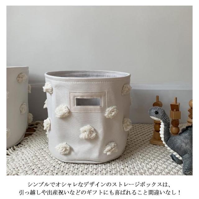 | 選べる2サイズ、部屋をスッキリ整理整頓できるかわいい収納ボックス 棚やシェルフの整理整頓を使うだけでお部屋の雰囲気が変わります。 柔らかくて自立してくれるキャンバス素材を採用して、小さなお子様でも安心してお使いいただけます。 前と後ろにある穴を持ち手にしてバッグのように使うことができて、小さなお子さんでも一人で簡単に移動することができます。床にも傷をしません。 使わない時はコンパクトに折りたためるから、かさばらずに保管しやすい。 シンプルでオシャレなデザインのストレージボックスは、引っ越しや出産祝いなどのギフトにも喜ばれること間違いなし! | |