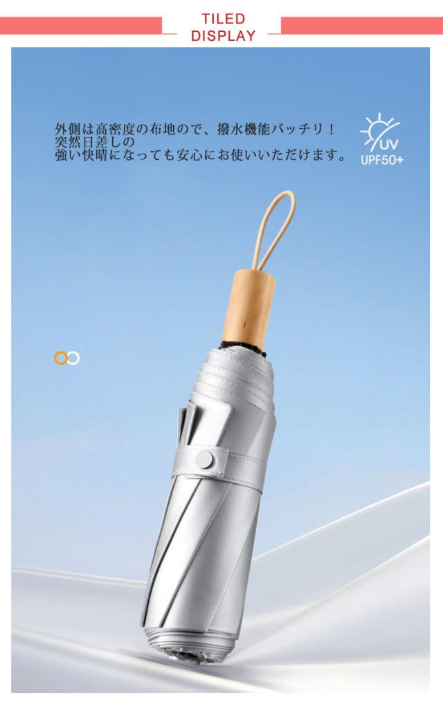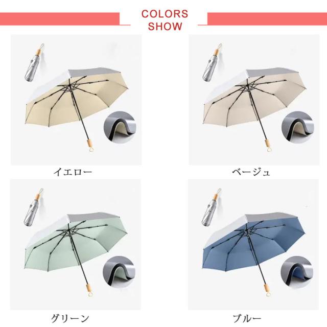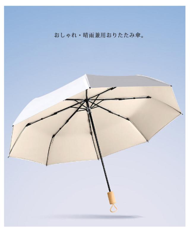 | おしゃれ・晴雨兼用おりたたみ傘。 【晴雨兼用&100%遮光効果】裏側は遮熱コーディング布地を採用されて、 UVカット率99%以上、100%完全遮光効果を実現!外側は高密度の布地ので、撥水機能バッチリ!突然日差しの強い快晴になっても安心にお使いいただけます。 【温かみのある木製ハンドル】ナチュラル雰囲気ななかにも洗練されたデザインを演出しました。傘面の直径が99cmに達って、荷物を持っても余裕を持っている程の大きいので、雨に濡れないです。 【耐風且つ頑丈&超撥水機能】柔軟性と耐久性を兼ね備えた8本のグラスファイバー素材を採用して、強風で裏返ったとしても壊れにくい構造となっております。 | |