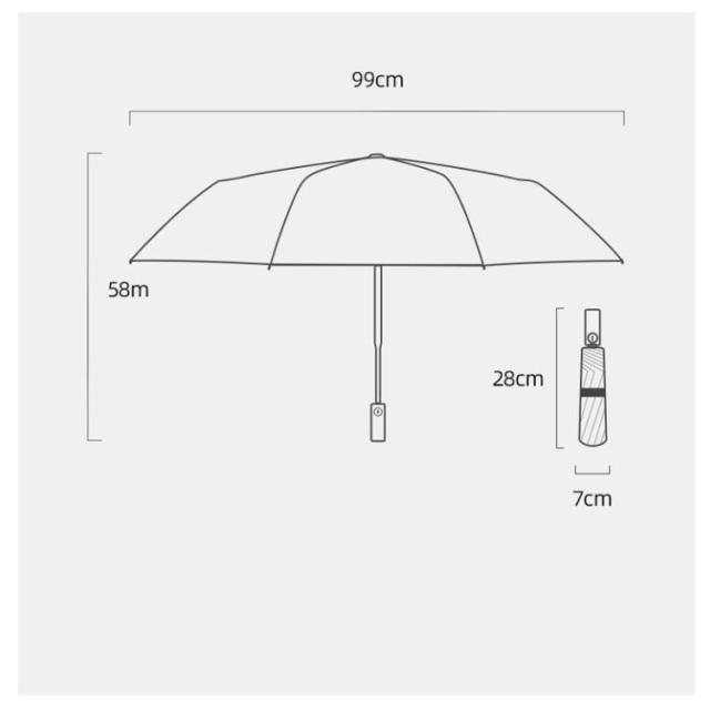| サイズについての説明 | サイズ:収納時全長28cm 展開時全長58cm 直径約99cm 中骨8本 重量420g |