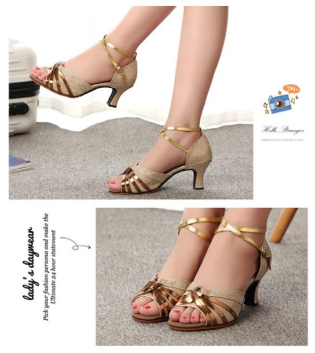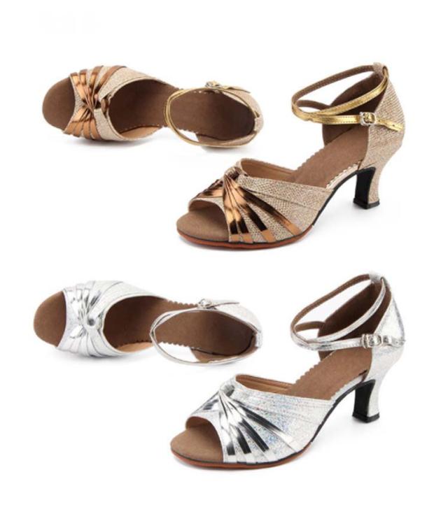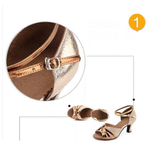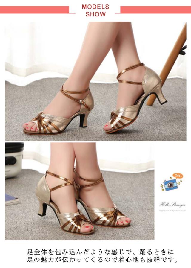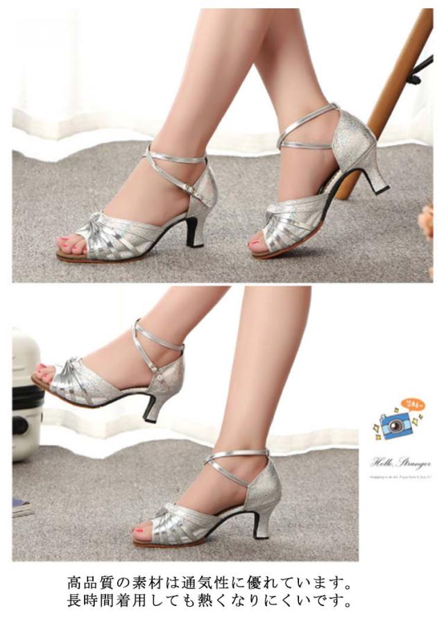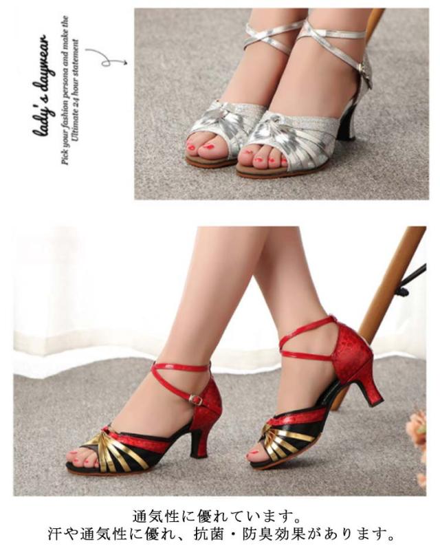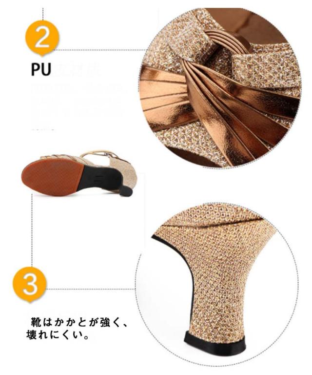 社交ダンスシューズ 女性 レディース モダン、ラテン兼用 靴 室外用 女性サンダル 演出 発表会 練習 キラキラ ダンスヒール ストラップ 美脚 コンクール ゴールド シルバー