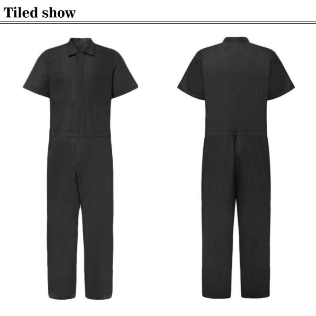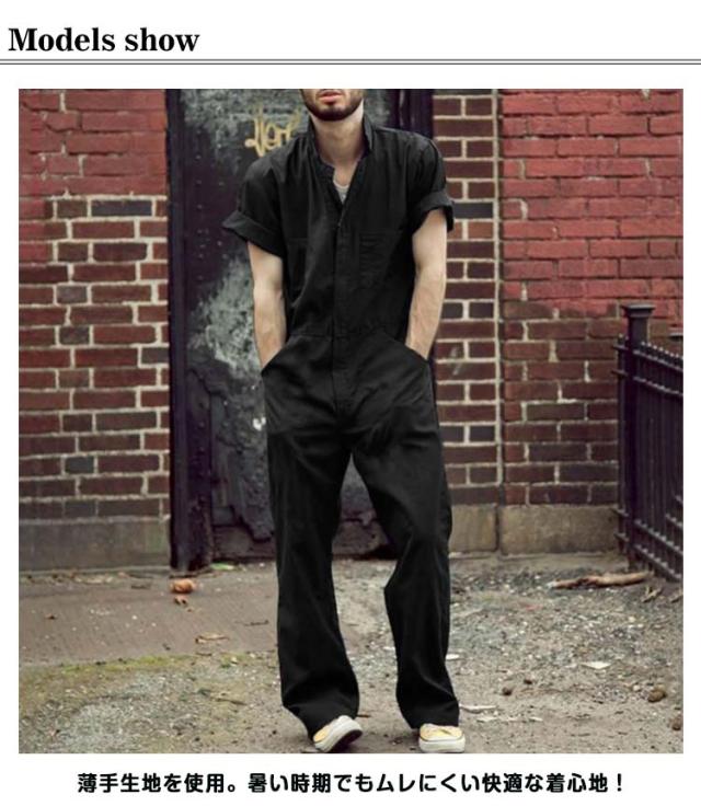 送料無料 半袖ツナギ メンズ 春夏 作業服 全2色 つなぎ 半袖 作業着 M L XL 2XL 3XL ブラック ブルー