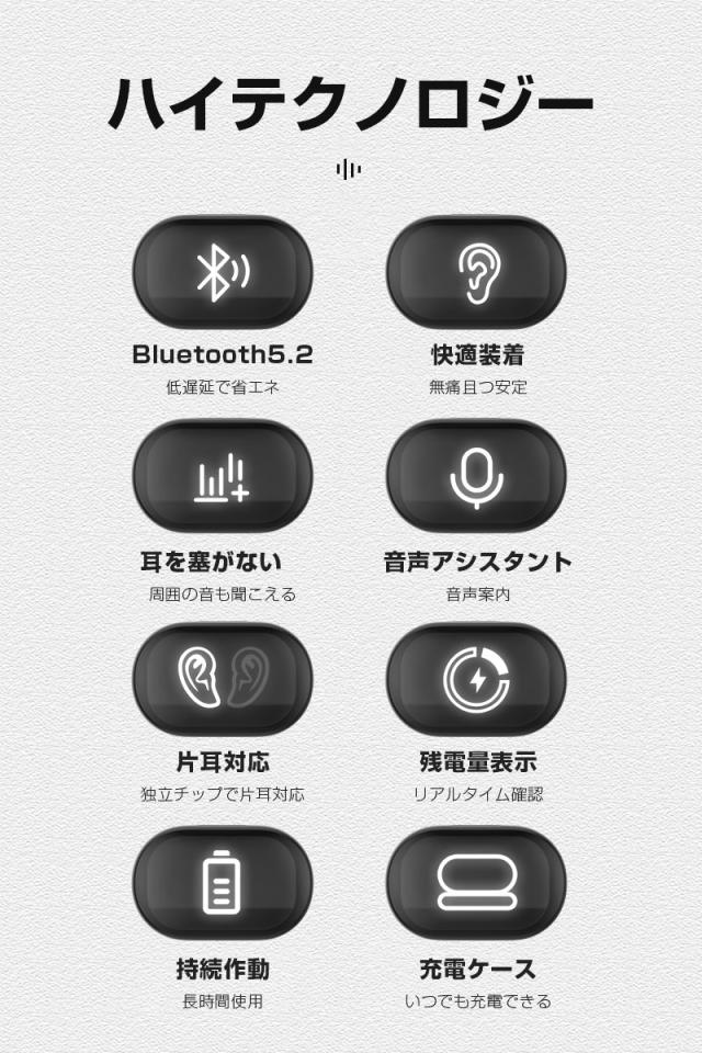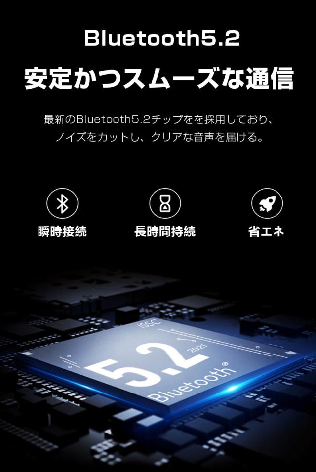 【安定した通信】本製品には最先端のBluetooth規格のバーション5.2を採用しており、接続安定性が高く、音飛びや途切れが起きにくくなり、音声遅延を効果的に抑制されました。左右側とも独立通信チップを搭載し、片側だけでも両側同時でも使用でき、使い勝てがいいです。