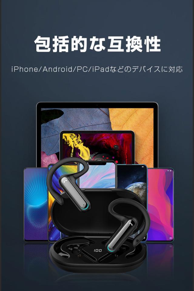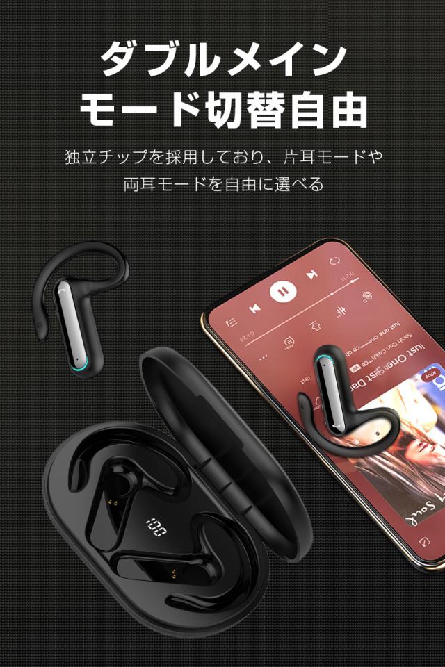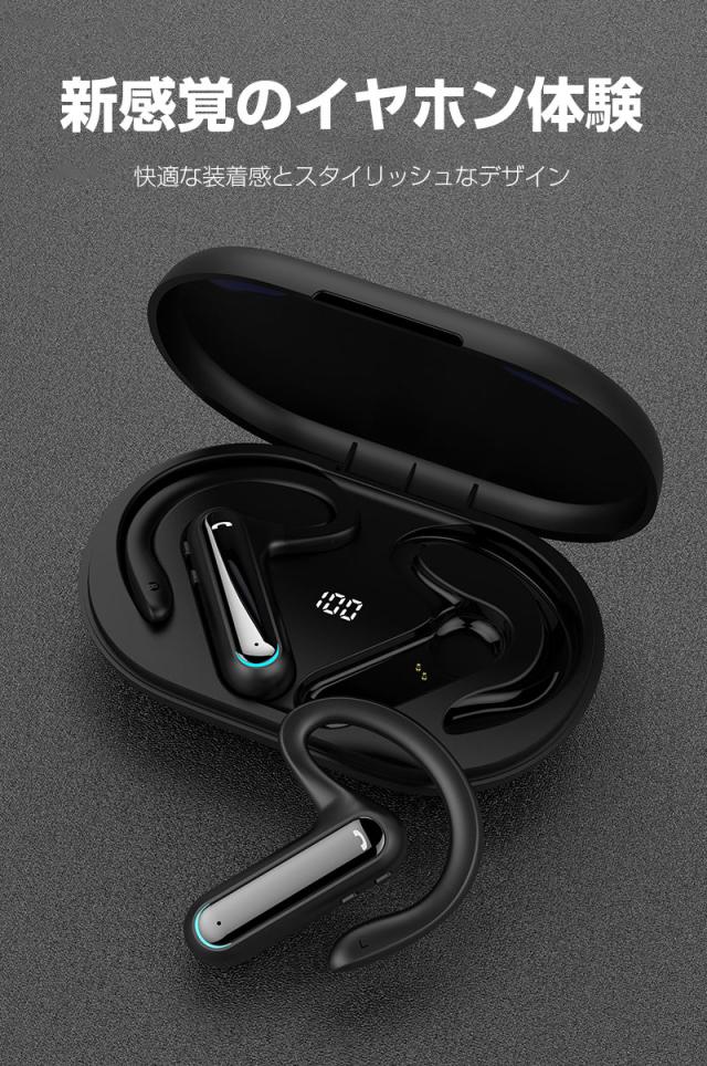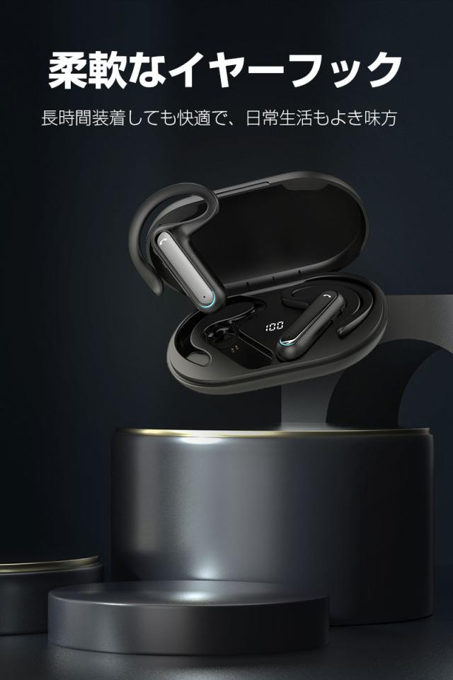 骨伝導イヤホン ワイヤレイヤホン TWS Bluetooth5.2 HiFi高音質 ブルートゥースイヤホン 耳を塞がない 両耳タイプ イヤーフック付き 【PL保険加入済み製品・安心】