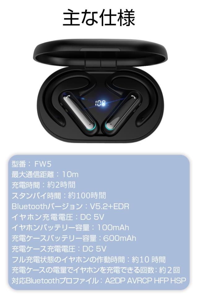 【パッケージ内容】イヤホン+充電ケース、充電ケーブル、日本語取扱説明書