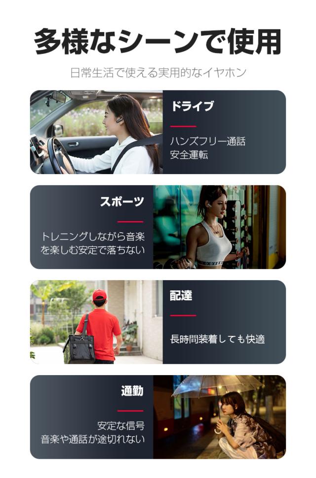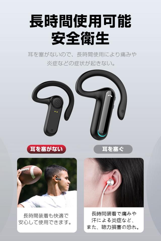 【耳を塞がない】インナーイヤー型とも違って耳をふさがないので、外の音を遮断しないから閉塞感がなく、いつものように音楽を聴きながら周囲の音も聞こえるという画期的な性能が注目を集めています。