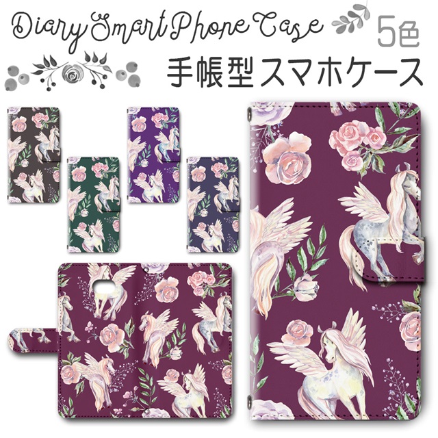 スマホケース 手帳型 BASIO4 KYV47/かんたんスマホ2 A001KC 対応 送料無料 ユニコーン 花柄 ゆめかわいい メルヘン / dc-390
