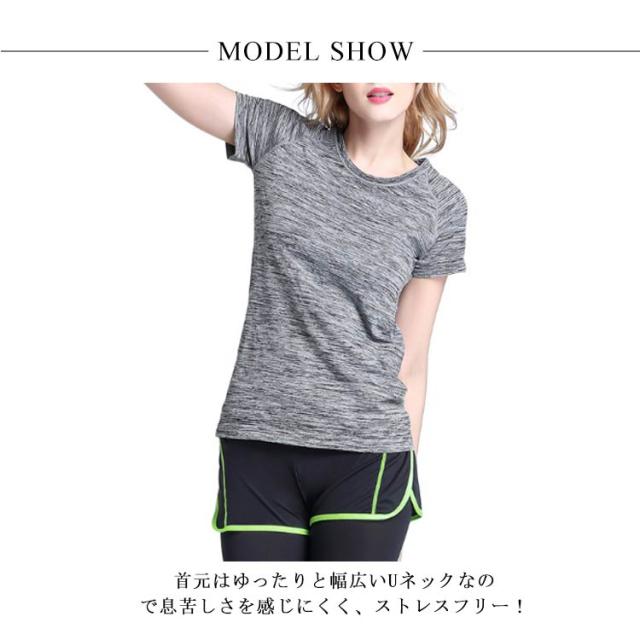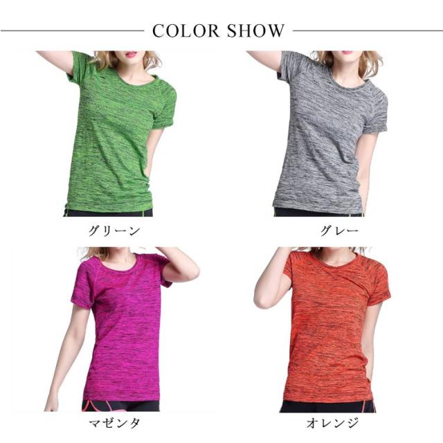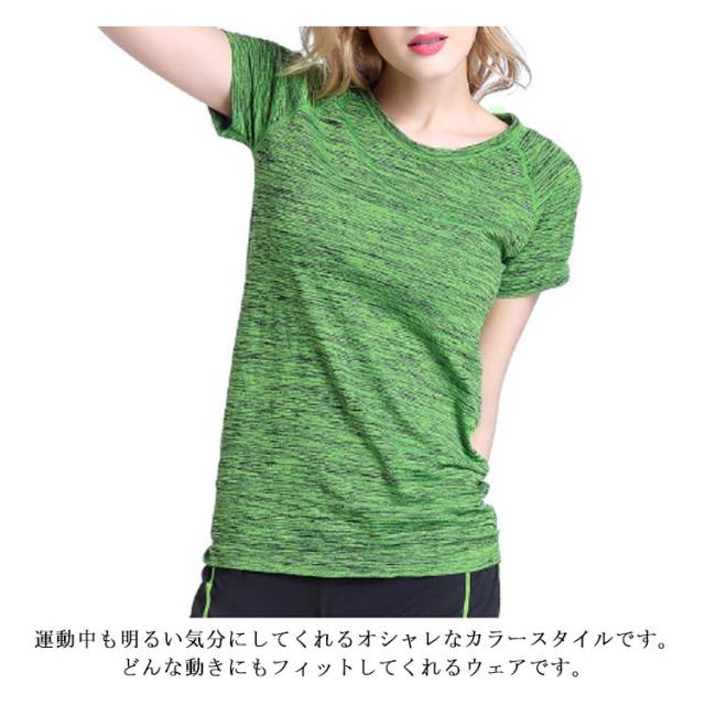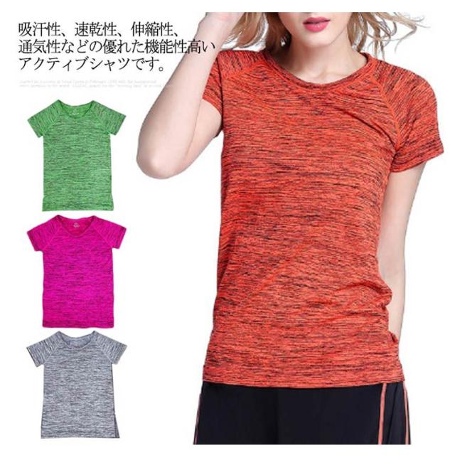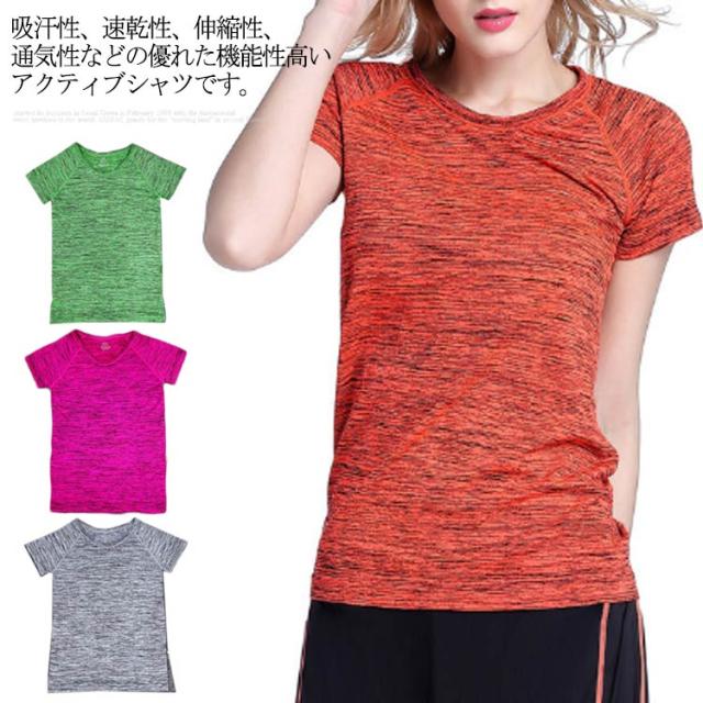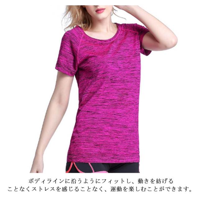 フィットネスシャツ 速乾 ドライ Tシャツ 送料無料 スポーツ レディース 速乾 半袖 スポーツウエア ヨガウエア フィットネスウエア Uネック ラウンドネック トレーニングウエア ヨガ フィットネス ジョギング ウォーキング ジム 運動