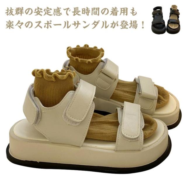 | 抜群の安定感で長時間の着用も楽々のスポールサンダルが登場! ストライプでマジックテープなのでサイズ調整が簡単、着脱にも便利です。 素足で履くのはもちろん、靴下と合わせれば春秋でも使える万能アイテムです。 厚底なので、安定感があり履きやすく、ホールが苦手な方にもオススメ! カジュアルスタイルにぴったりでパンツにもスカートにも合わせやすく重宝します。 | |