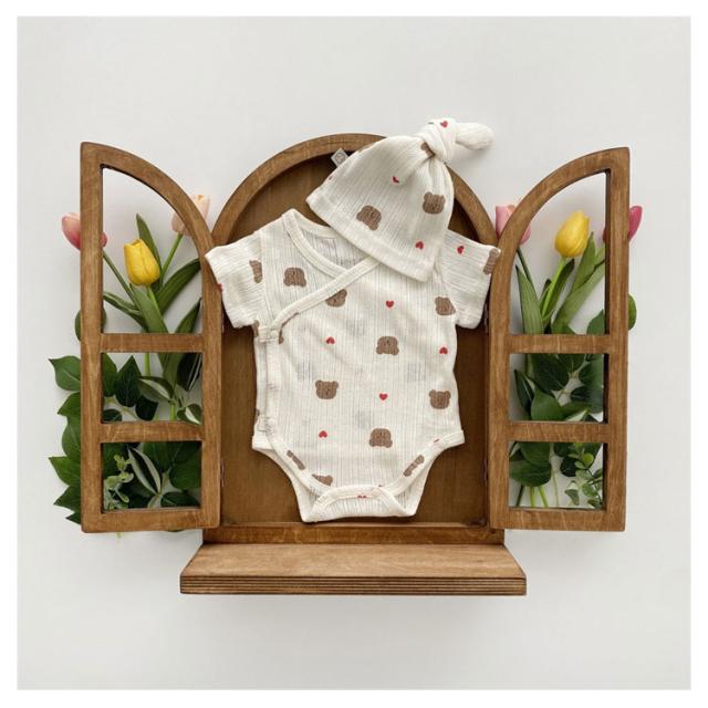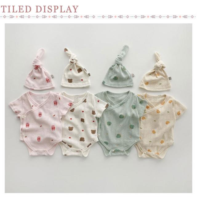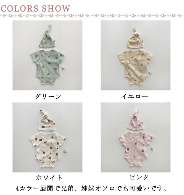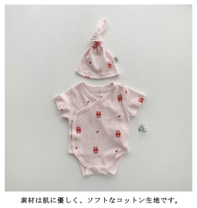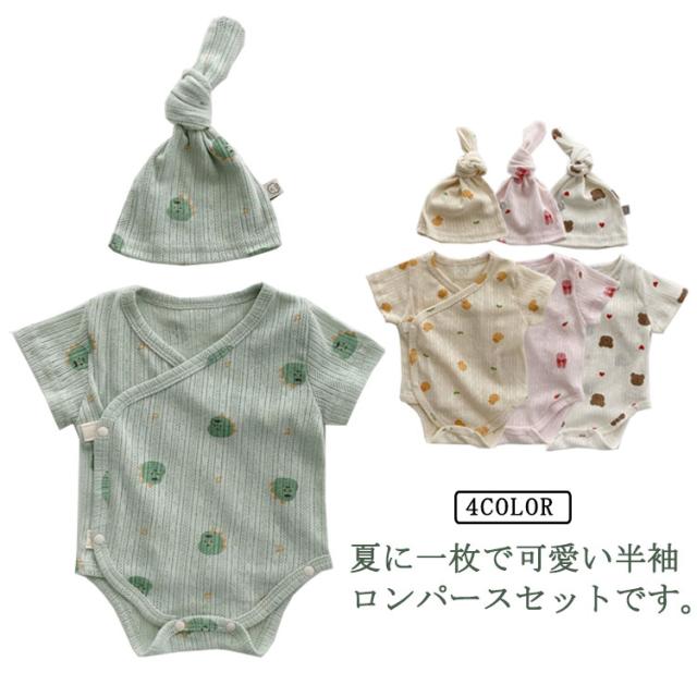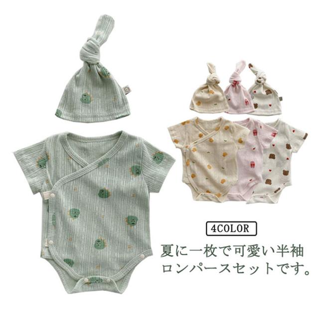 ロンパースセット ベビー服 新生児 男の子 女の子 ボンネット付き 66 73 80 90cm 赤ちゃん キッズ服 カバーオール 春 夏 半袖 綿 韓国子供服 お宮参り 退院着 可愛い 出産祝い プレゼント コットン 出産準備 送料無料