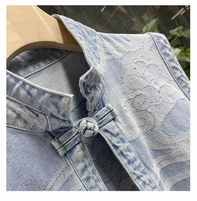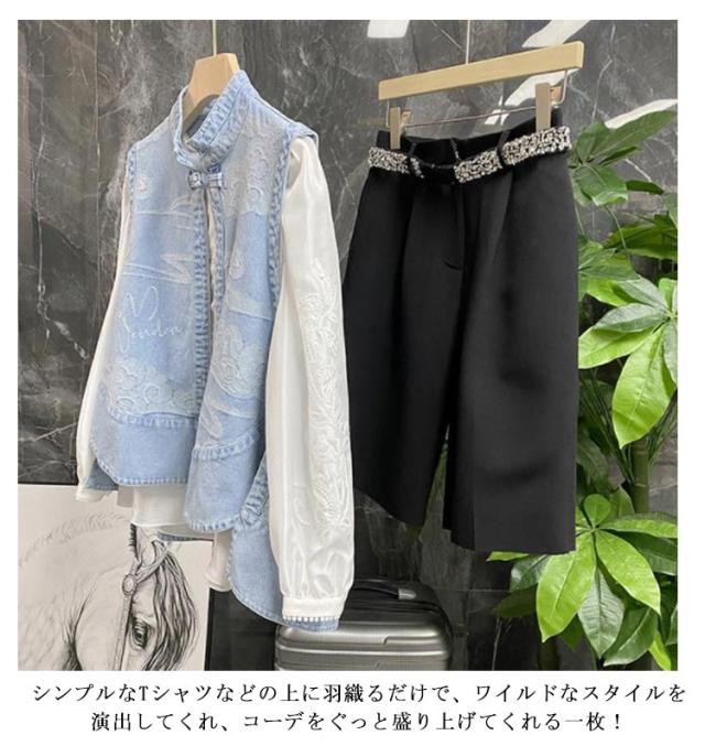 | 薄手のデニム素材でとても軽い着心地、オールシーズン使えるデニムベスト。 デコルテラインがすっきり美しく見える、上品なスタンド襟。 縦ラインを強調したすっきりとしたデザインなのに、カジュアルすぎず、女性らしくナチュラルな印象に 。 サイドはボタンで留めるだけなので、ワンピースなどと重ねても広がるシルエットを邪魔しません。 後ろ身ころが長いのも嬉しいポイント!シンプルなトップスに合わせるだけで、さりげなくエスニックなスタイルに。 シンプルなTシャツなどの上に羽織るだけで、ワイルドなスタイルを演出してくれ、コーデをぐっと盛り上げてくれる一枚! | |