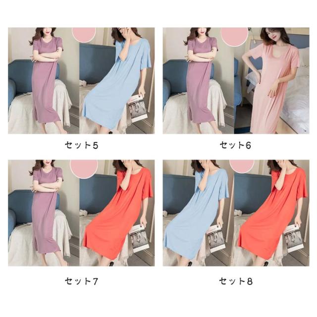 ワンピース カップ付き ルームウェア パジャマ レディース 2点セット 半袖ワンピース Tシャツワンピ ロングTシャツ 半袖 クルーネック ワイヤーなし 部屋着 寝間着 夏 肌着 女性用 通気 柔軟 弾性 軽量