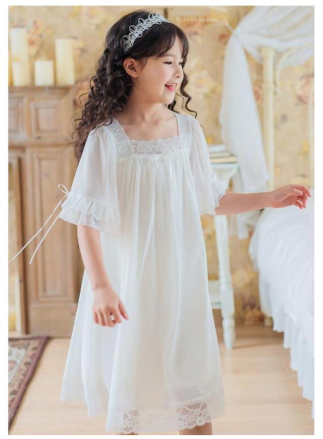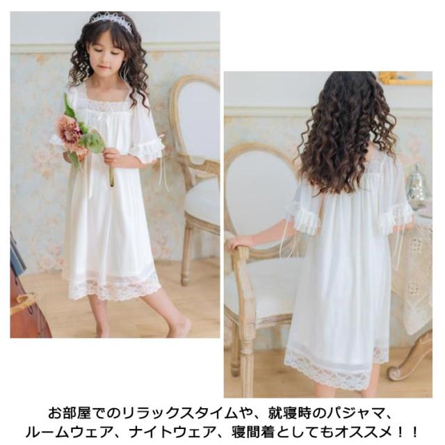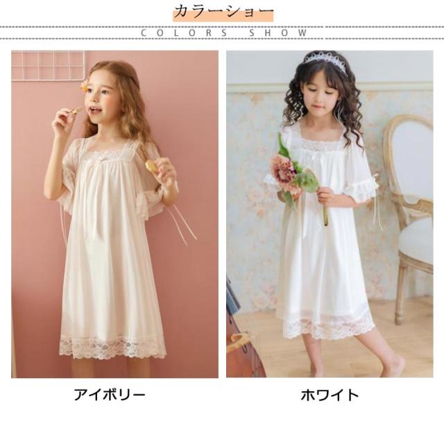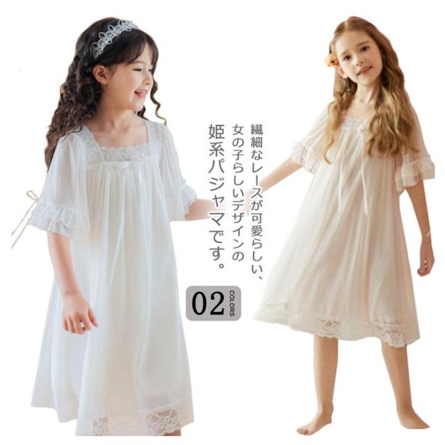 キッズ パジャマ 女の子 半袖 ルームウェア ワンピース ロング丈 女の子 子供 レース ドレス プリンセス パジャマ 姫系パジャマ 春 夏 ルームワンピース 部屋着 寝間着 ナイトドレス 保育園 女児 子供服 子ども服 ジュニア 誕生日 プレゼント 春夏 夏 送料無料