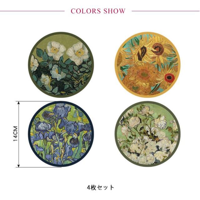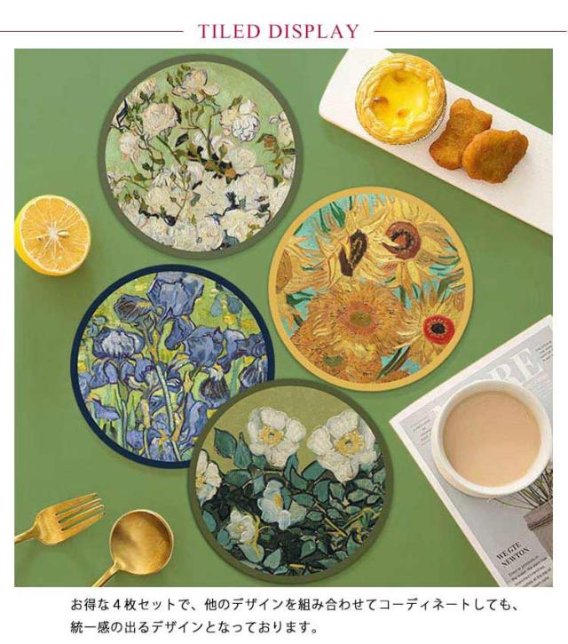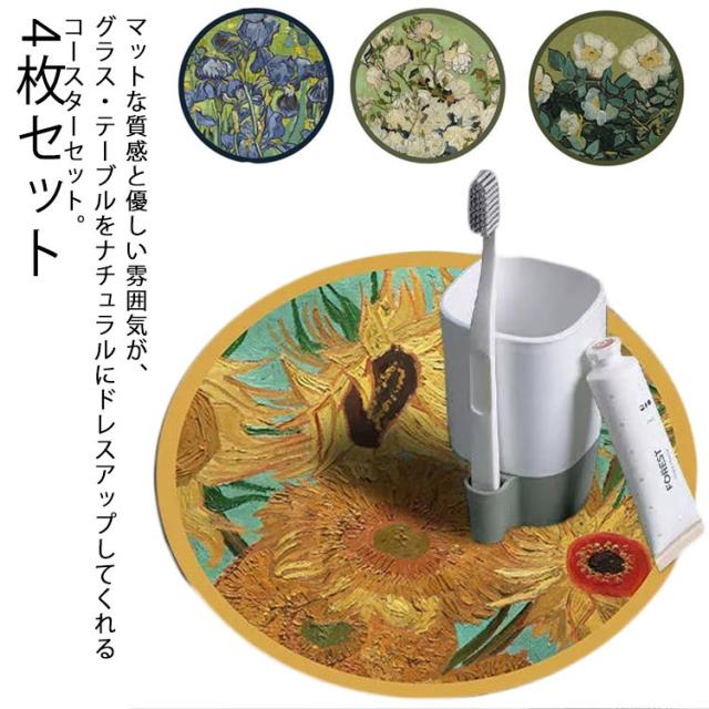 送料無料 コースター 4枚セット 花柄 すばやく吸水 サラッと速乾性 食器 コップ グラス 敷物 丸 正円 ラウンド コースター 食器 キッチン用品 食卓 インテリア 水滴 キッチン 調湿 オシャレ ギフト プレゼント