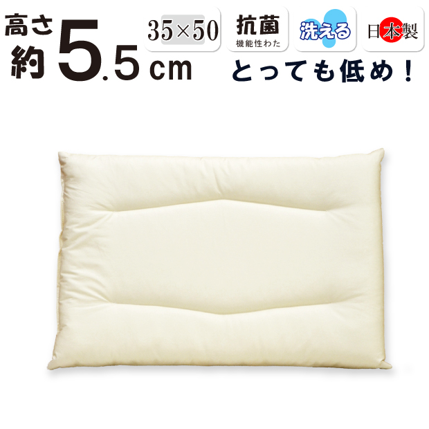 低い枕 低め 約5cm 洗える枕 35×50cm 日本製 綿100% 薄型 テイジン フィルケアECO すごく低い 超低め ストレートネック
