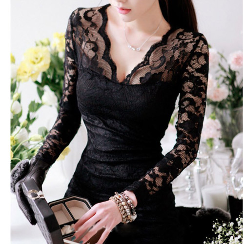 送料無料 沖縄、離島の方は除外です Vネック美シルエット ロングスリーブ&レース使いセクシーミニドレス キャバ 花魁 コスプレ 勝負服