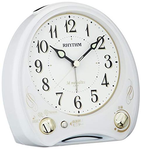 リズム(RHYTHM) 目覚まし時計 メロディ付き 連続秒針 アリアカンタービレN 白 13.6×13.5×7.9CM 8RM400SR03 ホワイト