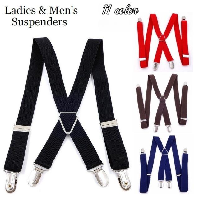 サスペンダー X型 レディース メンズ 男女兼用 クリップ 4点留め 吊りバンド 長さ100cm ズボン吊り ゴム 伸縮性 服飾