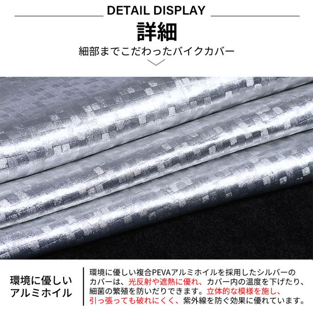 溶けない「厚手アルミ箔構造」 一般的なポリエステル素材は、真夏の直射日光や走行直後のマフラー熱で劣化・溶解しますが、本製品は高密度のアルミ箔層を装備。熱を強力に反射し、カバー自体の寿命も劇的に向上させました。