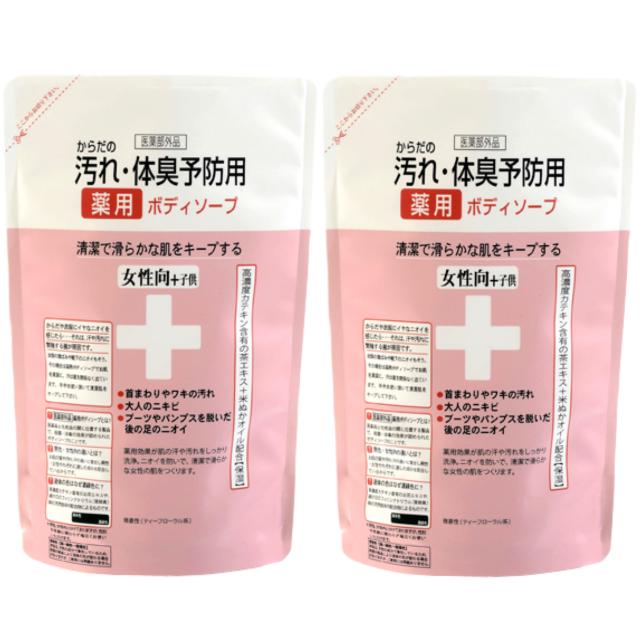からだの汚れ・体臭予防薬用ボディソープ 女性向+子供 詰替用 400ml×2袋セット クロバーコーポレーション 送料無料