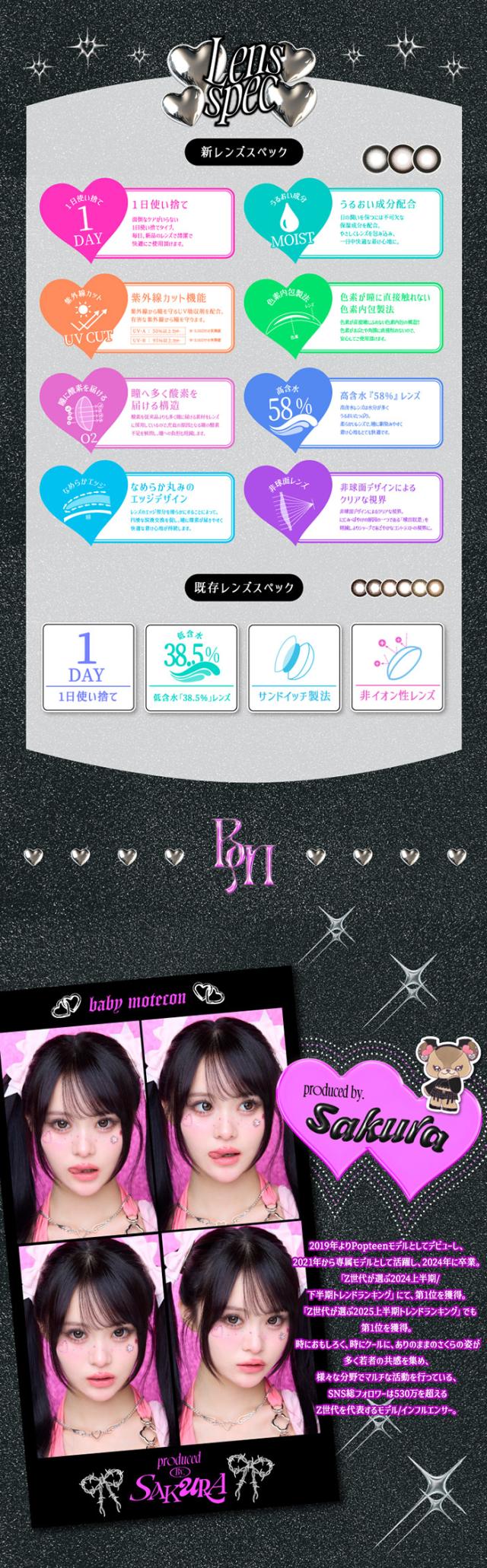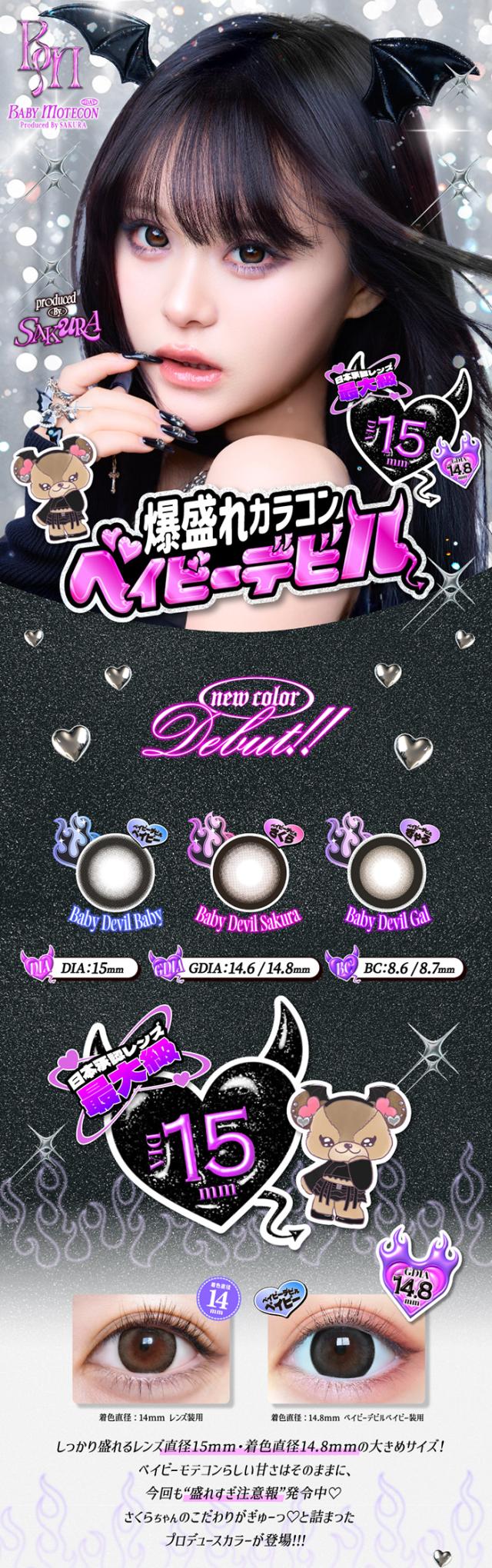 カラコン ワンデー 度あり BABY MOTECON 1day ベイビーモテコン 矢野桜(さくてぃん)SAKURA サクラ DIA15.0mm BC8.7 UV 1箱10枚入り 低含水 フチあり