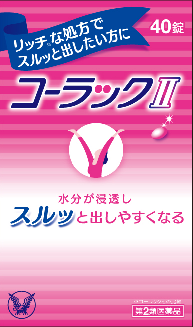 ●お届けはヤマト運輸・メール便(ポスト投函)又は日本郵便のゆうパケット(ポスト投函)の使用となりますので、お届けまでに1〜2週間のお時間頂く場合がございます。 ※配送業者はご指定頂けません。 ●決済方法として、代金引換はご利用頂けません。 ●日時指定、お届けの時間指定はご利用頂けません。 ●メール便不可の商品とご一緒にご注文の場合は、宅配便配送に変更となり、別途送料が加算されます。 ●商品が紛失、未着、破損した場合でも、補償の対象となりませんのでご注意ください。 ○コーラックIIは,DSS※が便に水分をふくませ適度に軟らかくし,ビサコジルが大腸を直接刺激して運動を活発にすることにより,便秘にしっかり効きます。 ○便通の具合を見ながら服用量を調節することができます。 ※ジオクチルソジウムスルホサクシネート