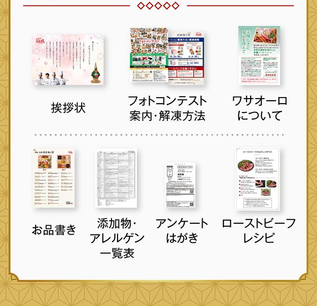 (お品書き、添加物・アレルゲン一覧表、解凍方法付き)