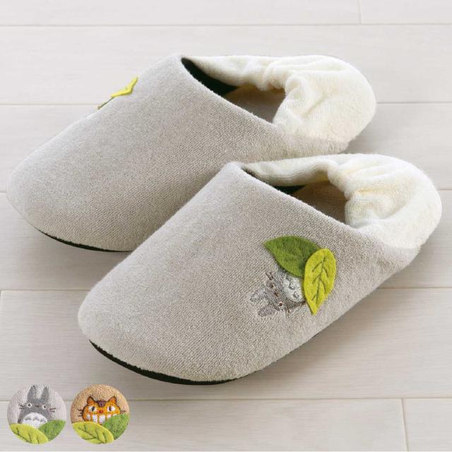 スリッパ おさんぽトトロ おさんぽネコバス 約24.0cm ( トトロ となりのトトロ レディース 幅広 滑り止め 洗える 洗濯機 ルームシューズ 室内 ねこバス ルームスリッパ バブーシュタイプ ワイド 室内履き パイル生地 かわいい )