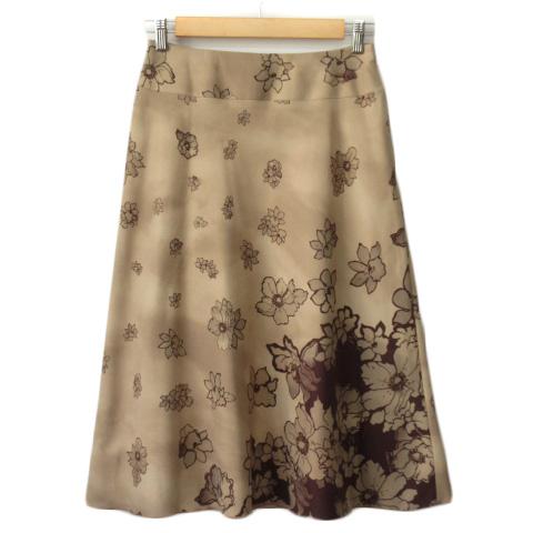 【中古】キャサリンロス KATHARINE ROSS スカート フレア 花柄 フェイクスエード MB ベージュ レディース