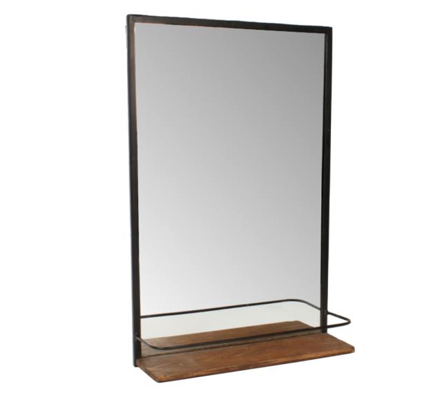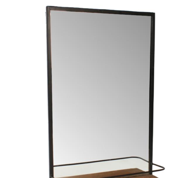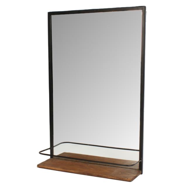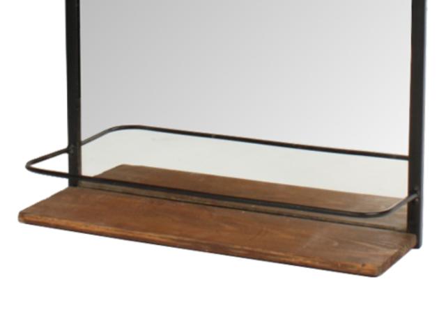 アイアンと天然木の組み合わせた棚付きウォールミラー