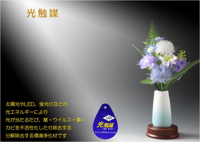 ■材質:花瓶/陶器 花/シルクフラワー(光触媒加工)・樹脂・スチール・ファイバー 台座/樹脂