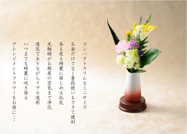お盆飾り【光触媒・光ファイバー:LEDイルミネーション仏花 テルミナ花瓶付きミニ 紅】光るお花 お盆用品 霊前灯 提灯 供花 供物 お供え 造花 仏壇用仏具 新盆 初盆 盆花 迎え火 送り火 インテリア提灯 コードレス 送料無料