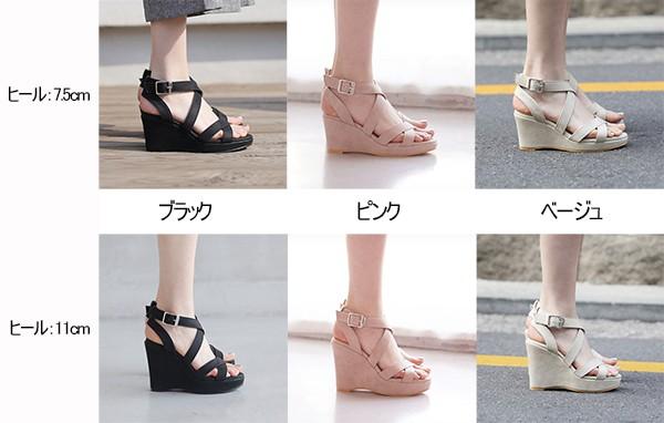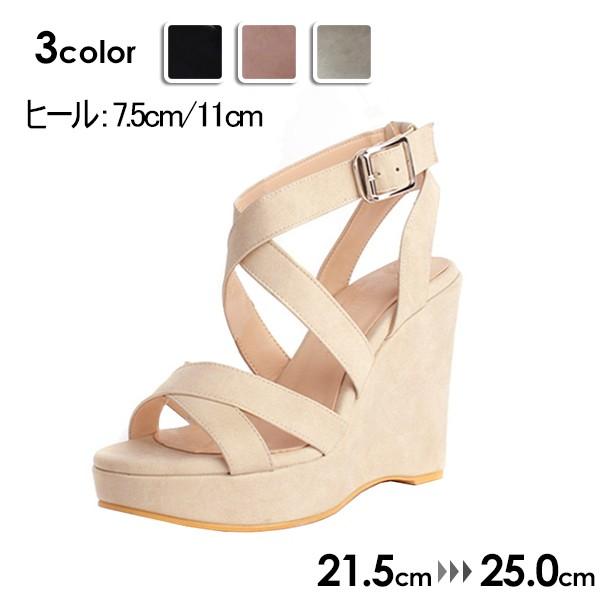 サンダル レディース ウェッジソール 厚底 ベルト 3color ストラップ 大きいサイズ ハイヒール ストーム ヒール7.5cm/11cm 夏 着心地よい 小さいサイズ 靴 女性 大人 ブラック ベージュ ei002jcjcla