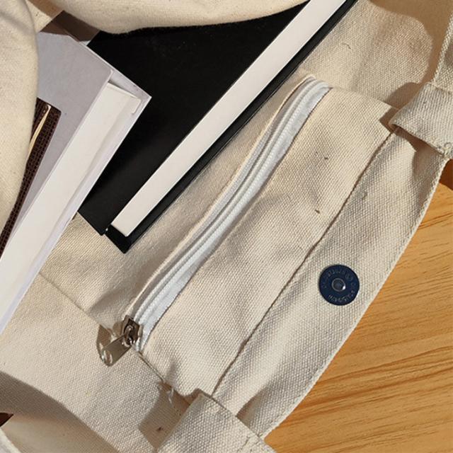 スマホや鍵などの小物を収納できるファスナーポケット付き。