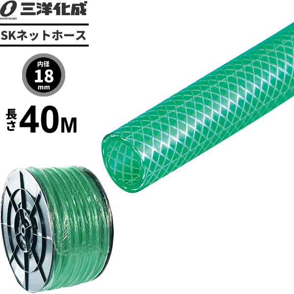 SKネットホース 長さ40m(内径18×外径24mm) グリーン SN-1824H40G | 散水 ホース 耐寒 家庭用 農園芸 洗車 給水 耐圧 クリア タイプ 水用 水まき 水撒き