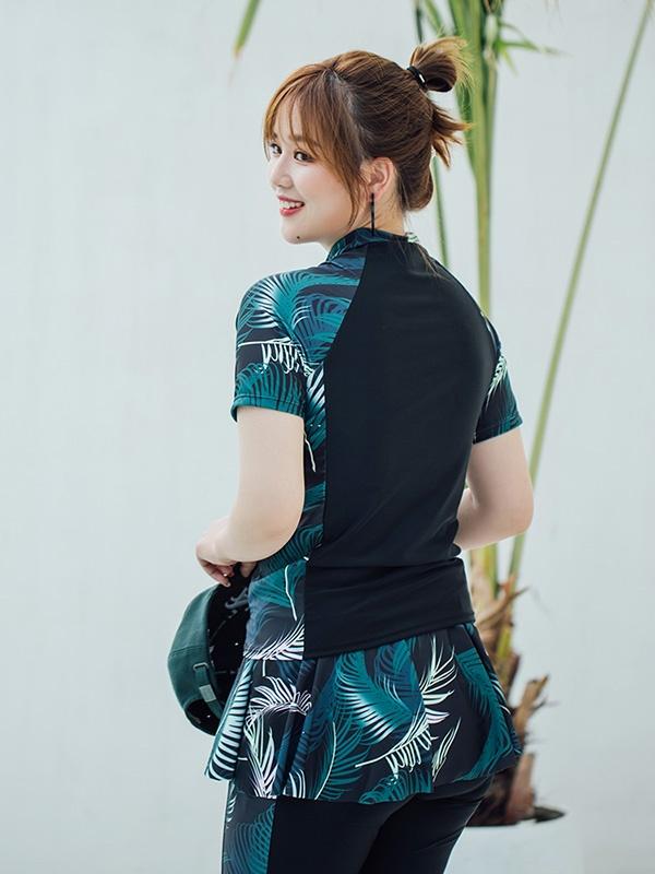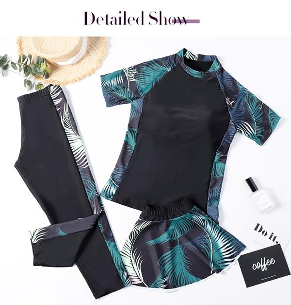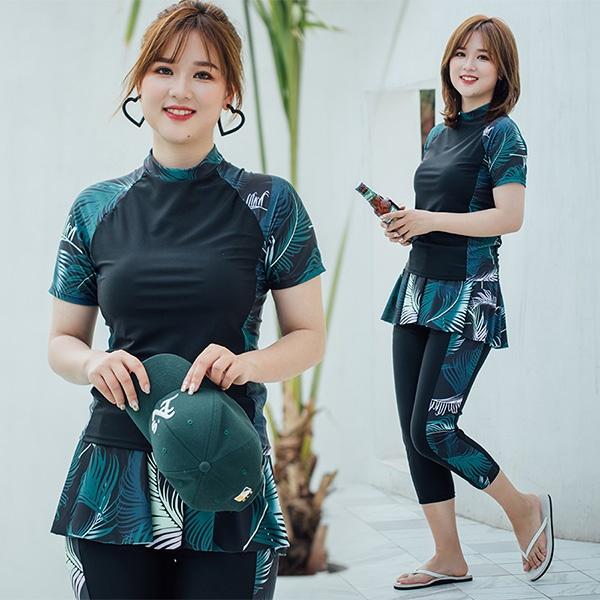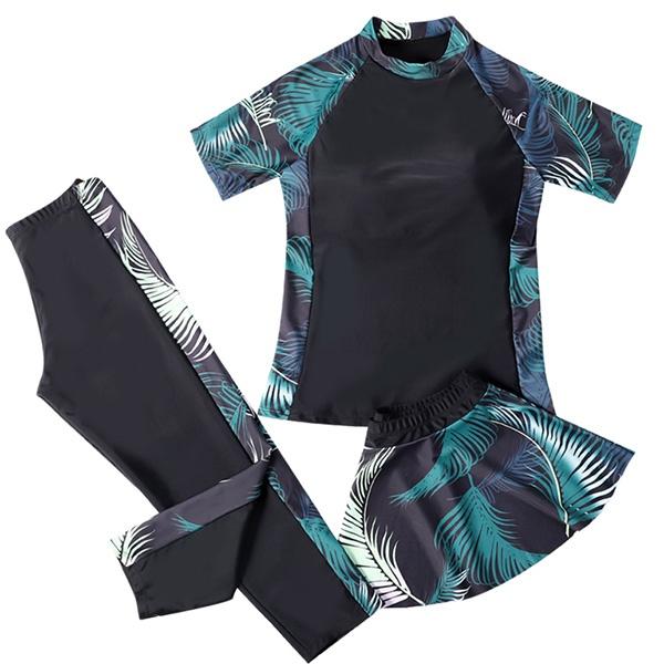 【サイズ有2L/3L/4L/5L】半袖 フィットネス水着 セパレート水着 ぽっちゃり水着 レディース 大きいサイズ 3点セット スカート付き 競技 競泳 体型カバー 海水浴 温泉 韓国風 大人 女性用 上下セット df021x1