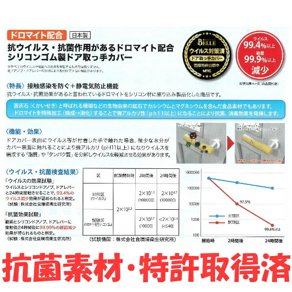 かぶせるだけの ドアノブカバー ドアノブカバー レバーハンドルカバー 静電気防止 シリコン製 抗ウイルス 抗菌 メルスプラス ベル MERUS PLUS BELLE 2個セット 全6色 日本製 ドロマイト配合 カラフル 特許取得済 インテリア オフィス 病院 公共施設 保育園 幼稚園 学校