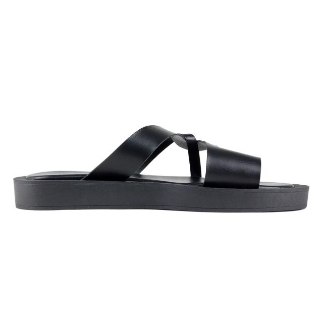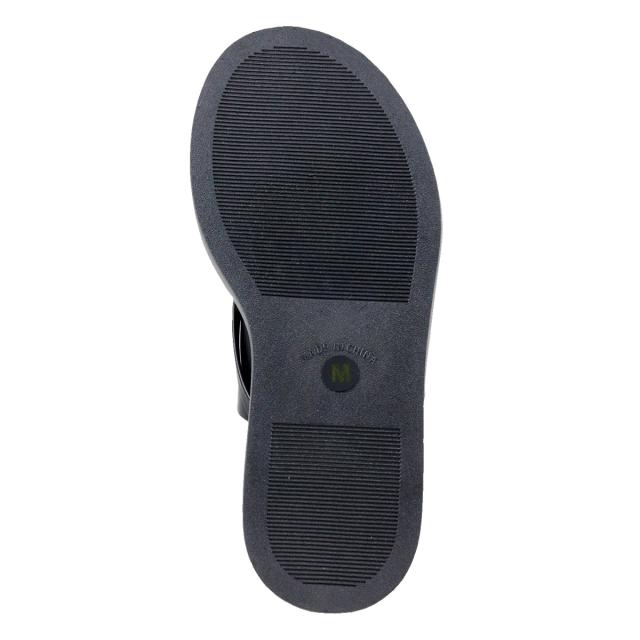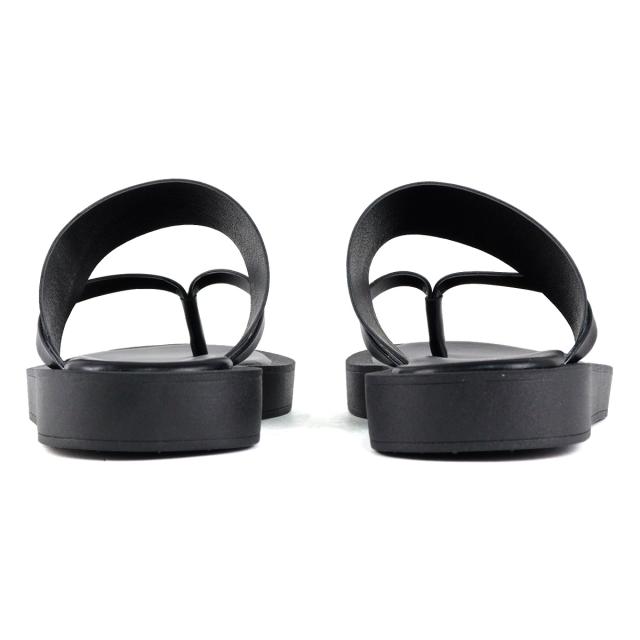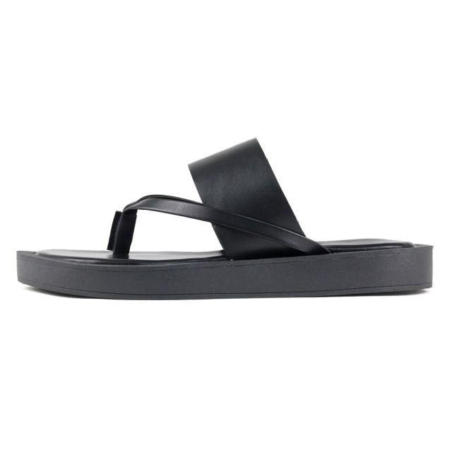 細めのストラップと甲を覆う太めのベルトが絶妙なバランスのトングサンダル。