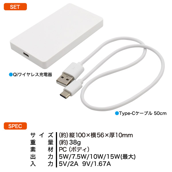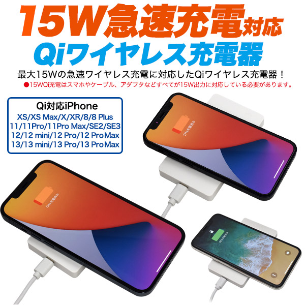 ●15W急速充電対応 Qiコンパクトワイヤレス充電器!※15W Qi充電はスマホやケーブル、アダプタなどすべてが15W出力に対応している必要があります●コンパクト、軽量設計!●滑り止め2箇所付き!※滑り止めゴムに貼ってあるフィルムをはがしてお使いください。●UV印刷可能!オリジナルグッズ制作に!UVプリンターを使えば、 記念品やお祝い品、ノベルティ用のオリジナルグッズも制作可能です。Roland社、Mimaki社のプリンターで印刷テスト済みです。