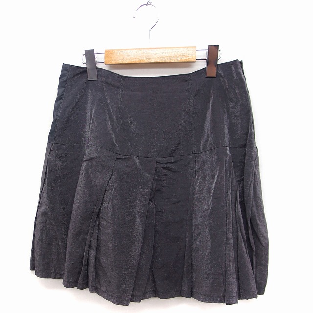 【中古】spazio jeans couture スパッツィオジーンズクチュール プリーツ フレア スカート ミニ 光沢 42 グレー 灰