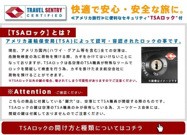 ※鍵穴は、万一の際にTSAが検査時に使用するものになりますので鍵は付属しておりません。