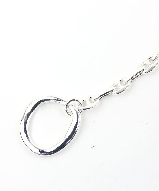 デザインチェーンの両端にシンプルなメタルバーとニュアンスサークルパーツをつけたネックレス。