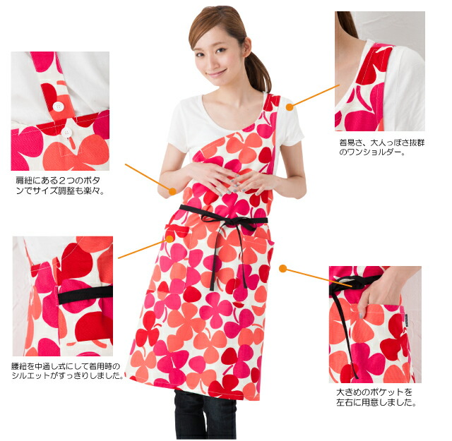 ワンショルダークローバーエプロン 日本製 かわいい おしゃれ プレゼント ギフト 母の日【メール便対応可】【N】【Y】