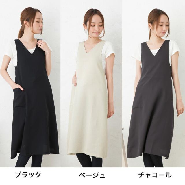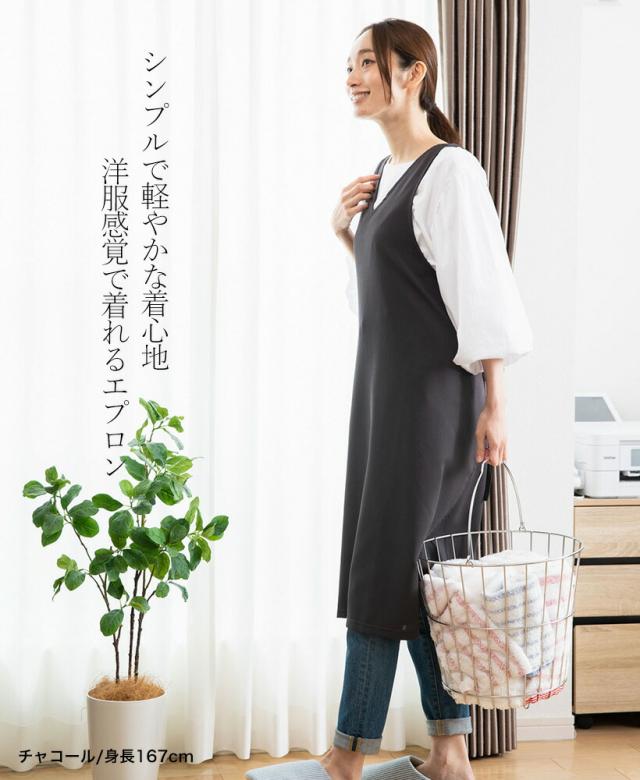 日本製 おしゃれ 女性 レディース 家事 キッチン 料理 ギフト プレゼント きれい かわいい ワンピース ワンマイル ベージュ チャコール ブラック 黒 無地 撥水 軽量 シンプル 飲食店 制服 ユニフォーム