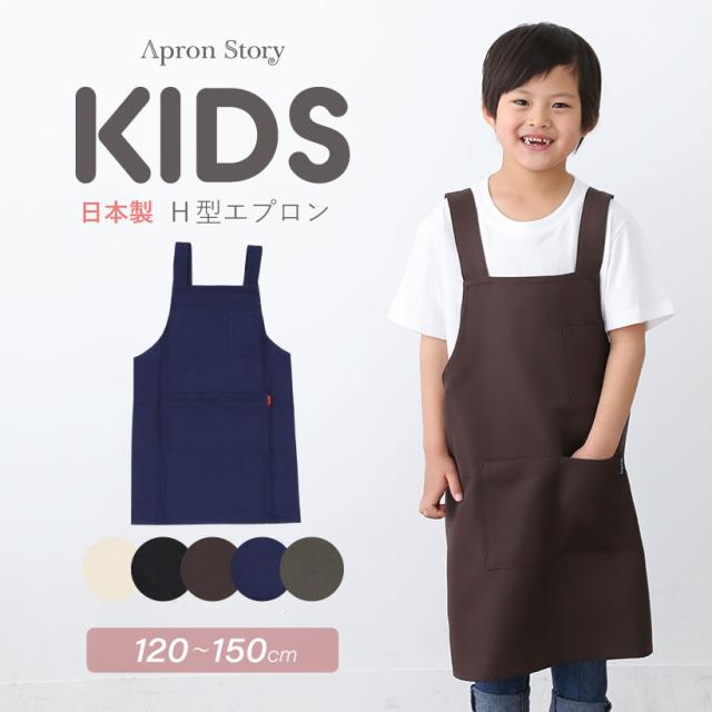 【メール便対応可】【キッズエプロン】【日本製】シンプルH型キッズエプロン 無地 7〜14歳 120cm〜150cm ポリエステル100% シンプル 女の子 男の子 子ども用 子供用 ギフト プレゼント【N】【Y】